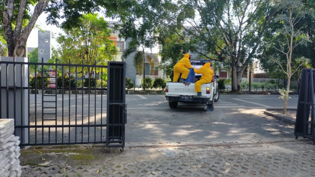 penyemprotan dilaksanakan di Wilayah Kelurahan Loktabat Utara, baik di Daerah Pemukiman Warga maupun Tempat Ibadah